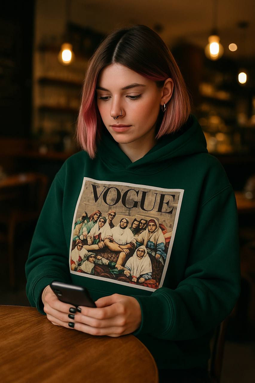 VOGUE Hoodie — Deep Green Editorial Streetwear | Persian Diaspora Fashion Piece